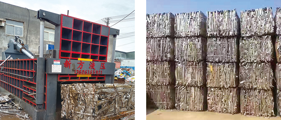 適用于不銹鋼薄板等金屬廢料的打包成型,然后進行手動式井字型捆扎包塊。